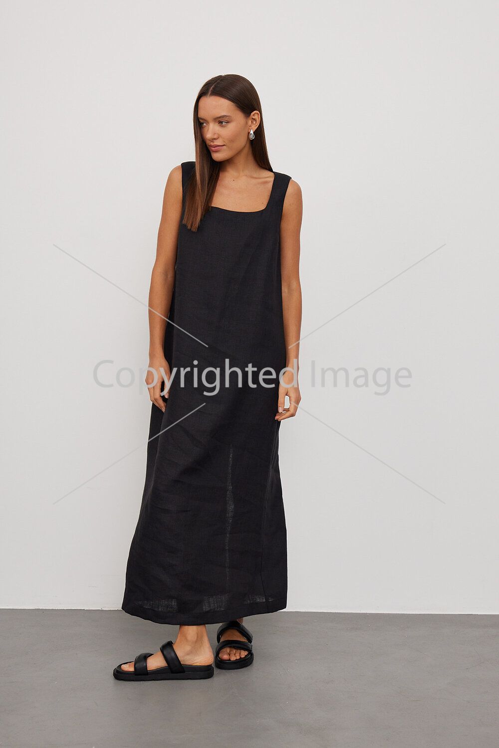Long linen sundress with wide straps. A-shaped silhouette, with slits on the sides, the model is made of 100% high-quality linen. Made in Russia at our own production.